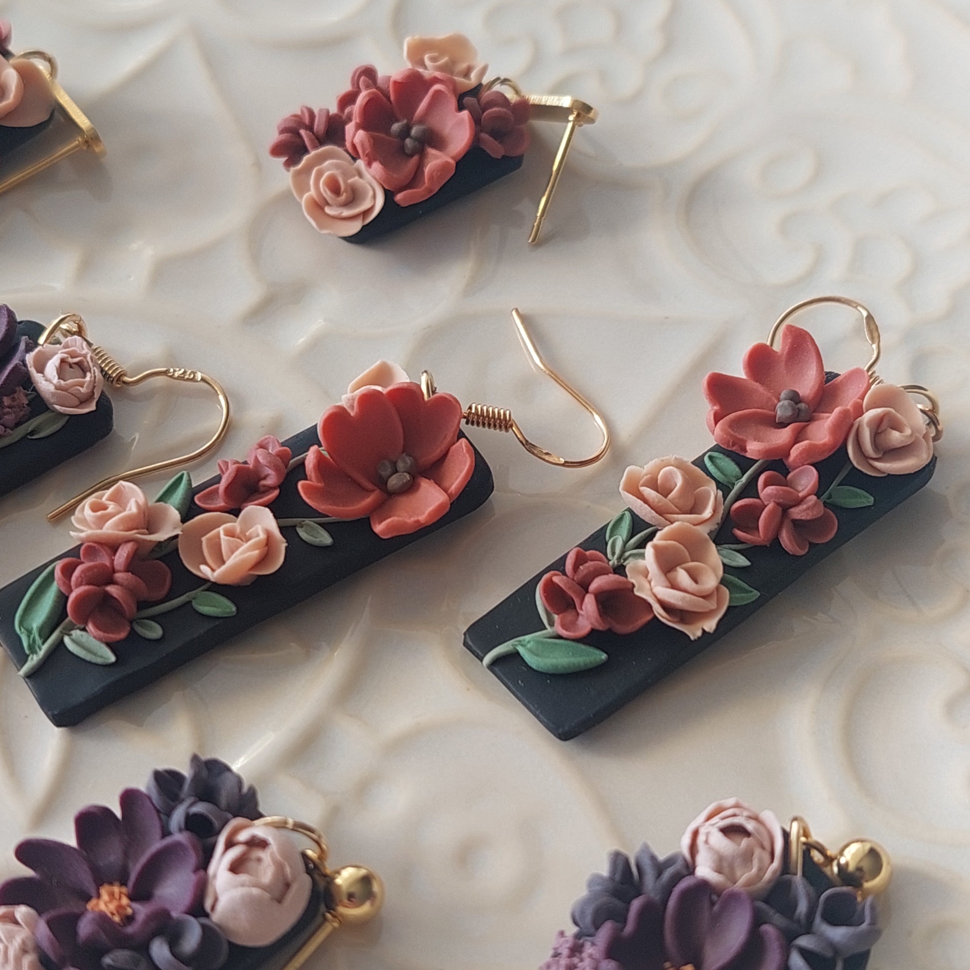 Gorgeous lightweight handcrafted polymer clay earrings with quality .925 sterling silver plated posts for sensitive ears.